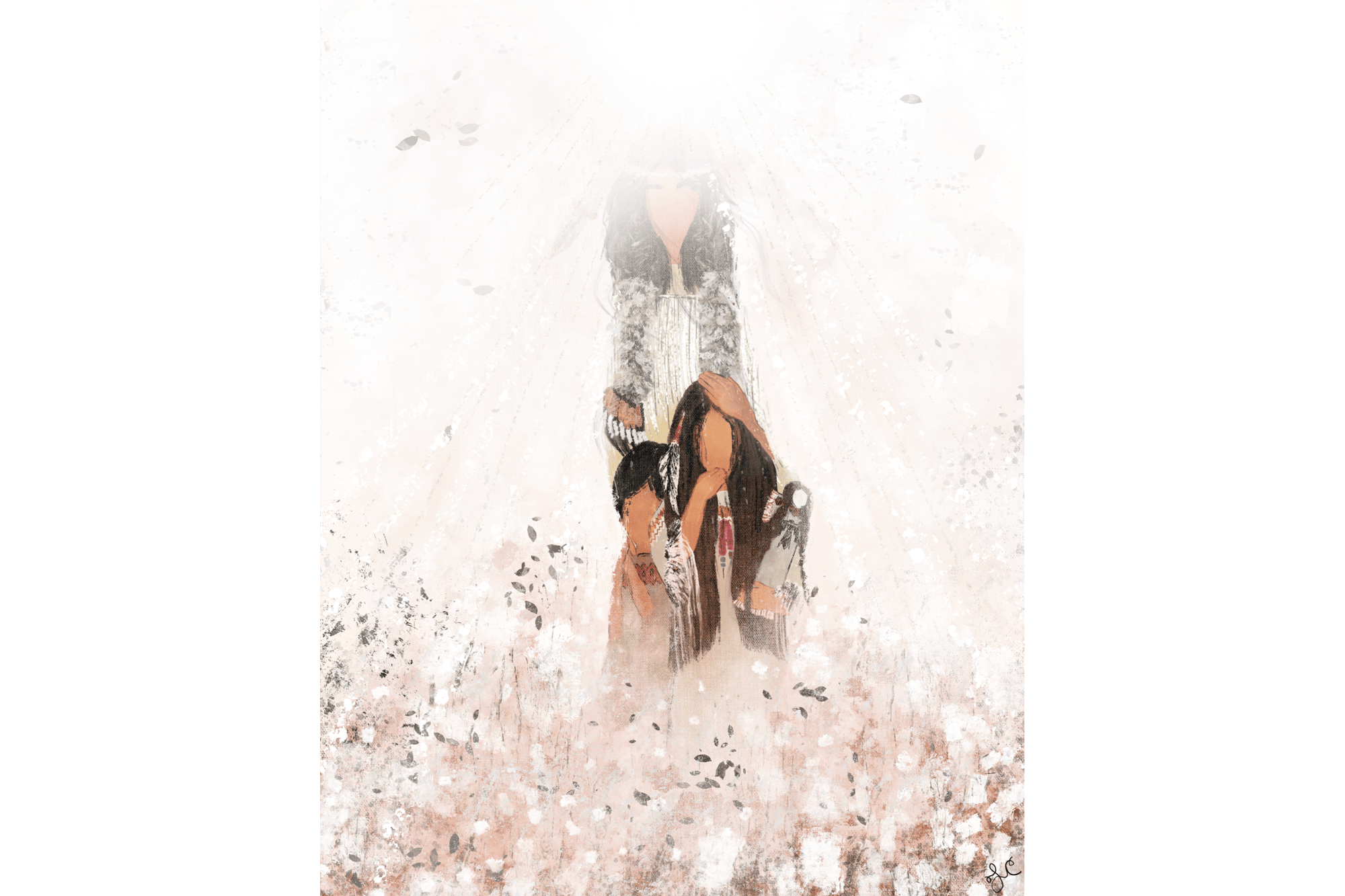 The figures are held not only by light, but by the elements themselves — earth, warmth, and spirit.